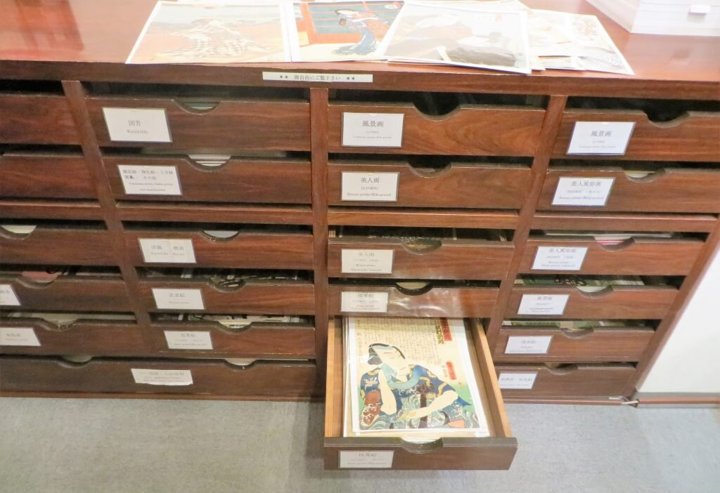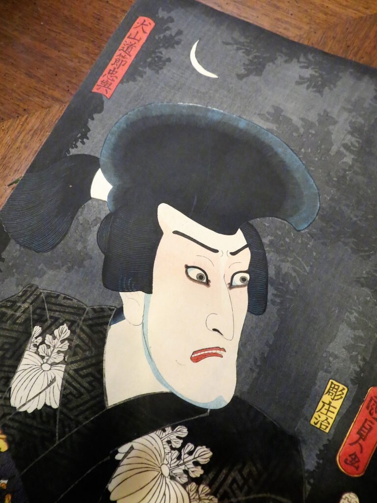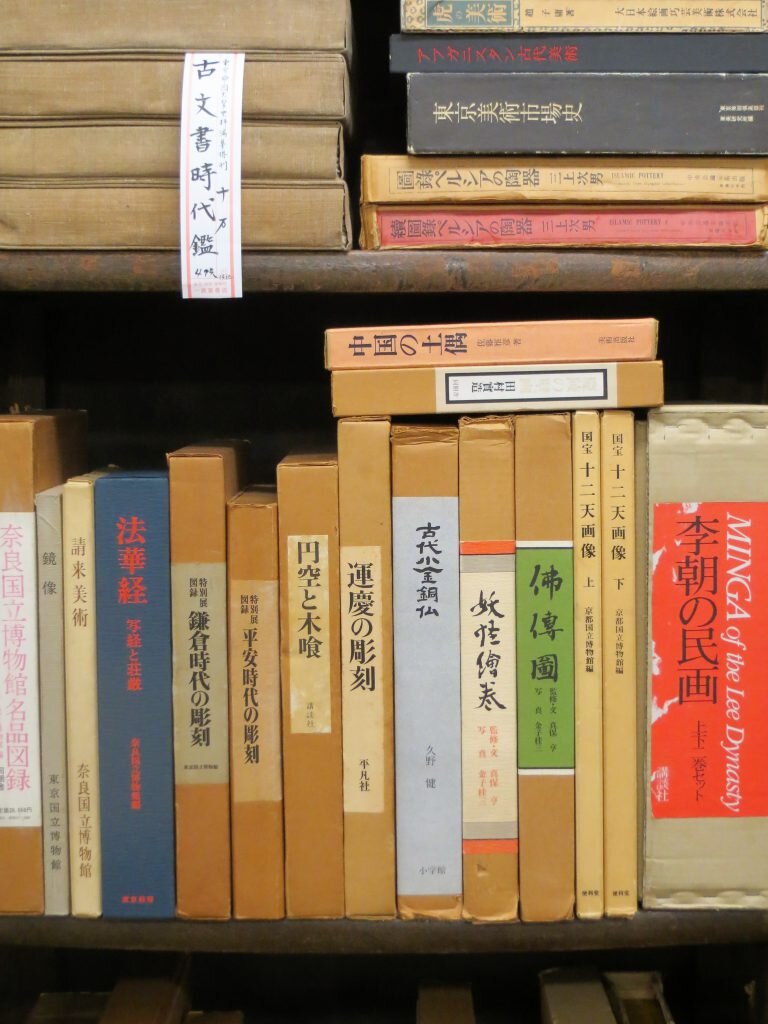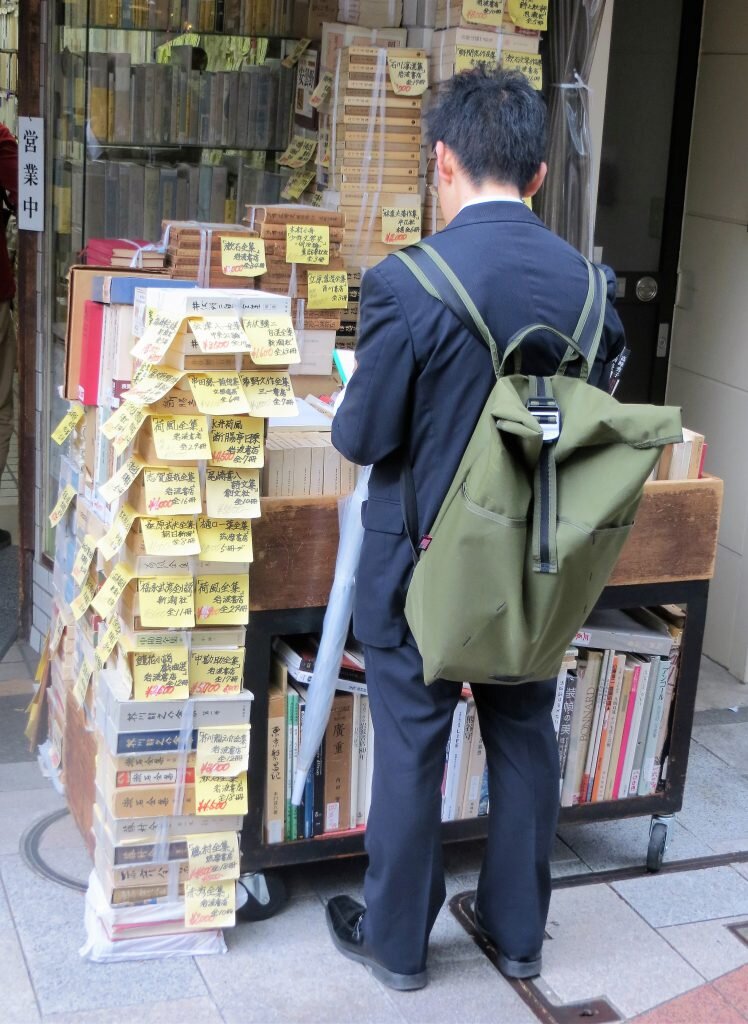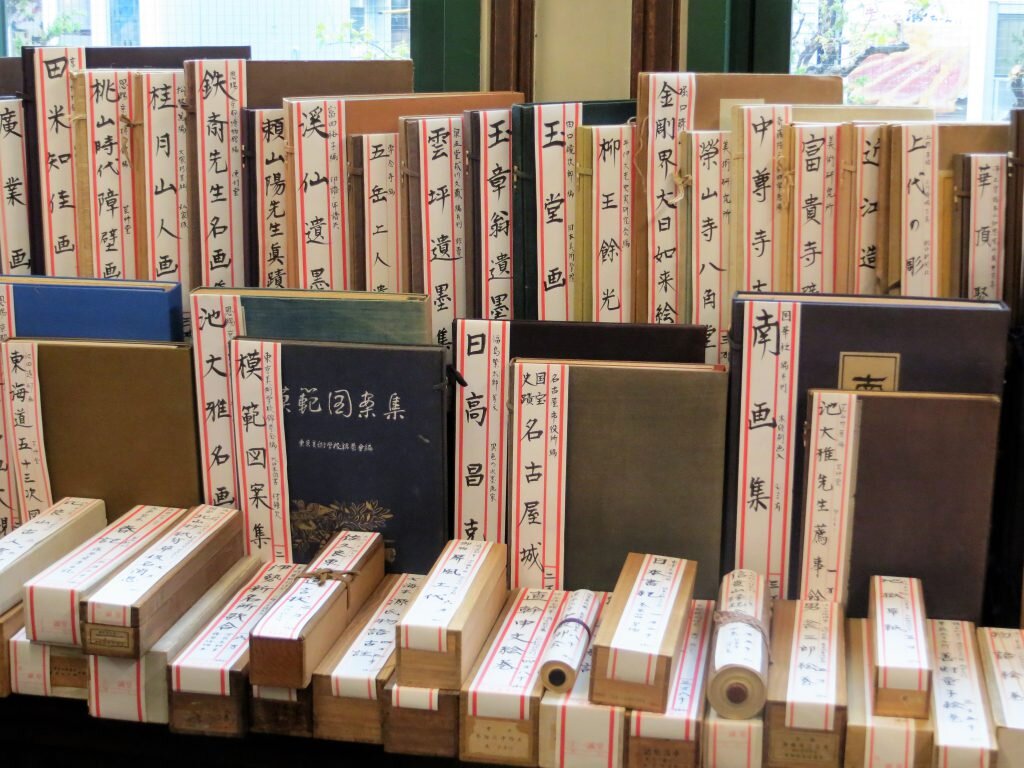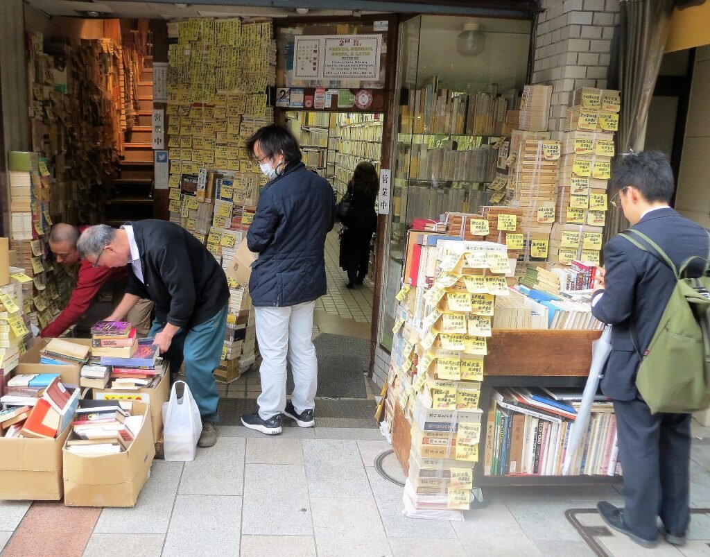 Literary Tourist in Tokyo:[dropcap]As[/dropcap] noted in my previous post, while there are quite a few interesting English books to be had in the Jimbocho bookstore neighbourhood of Tokyo, there are obviously a lot more in Japanese. And I was able to get lots of shots of them, and the stores that sell them, but, do you think I could convince any of the owners to pose for the camera? Fat chance. Given their reserve, the trick, I'm convinced, for next time, is to plan things far in advance, get the approval of someone in authority, and be accompanied by a wise old dealer known to all, or perhaps an official from the local booksellers association!Still, I was received very politely; just not, as is often the case in North America, with open arms.But, on to the stores. First off, I was amazed by the number of post-it notes,or whateverthey are, that these merchants use to display their wares. Also surprised that there wasn't more Manga for sale. The only really good selection I saw was at this store:Isseido Booksellers has a decent foreign language section on the second floor with a good number of books in English, mostly archeology and history, but the Japanese books, though incomprehensible, were muchmore attractiveOne thing that isn't incomprehensible is the beauty of Ukiyo-e Japanese woodblock prints. They flourished between the 17th and 19th centuries. Subjects included female beauties; kabuki(theatre)actors(experts at expressing emotion), and sumo wrestlers; scenes from history and folk tales; travel and landscapes; flora and fauna; and erotica. The Japanese never thought much of these prints - they were produced primarily for the unwashed masses. These prints did however find an admiring audience in the West in the late 1800s. Today you can pick up originals for as little as US$50. Older, sought-after editions go for much more. I saw one on sale for 800,000 Yen (about US$8,000) at Hara Shobo, one of the best Ukiyo-e shops in the area. They have thousands of original prints for sale,as well as a very knowledgeable, solicitous staff. One pleasant woman (who didn't want her photograph taken) showed me the difference between an early print(please ignore the flying saucers) and a later version (note all the white around the wood frames) printed with the same block.And one final observation. I couldn't help but notice that pretty well everyone depicted in the prints, at least the ones I saw, had humongousfeet. Clearly no foot-binding going on in 19th century Japan!