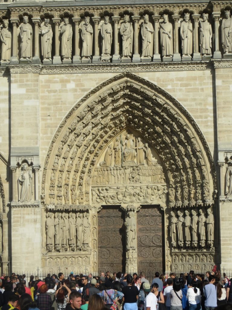We'd agreed to meet at 5.30pm just around the corner from the bookstore behind Notre Dame cathedral in a little treed park. It was now after 6, and she, understandably, wasn't there. Luckily the City of Paris provides free WiFi right in the park so I sent off a groveling, apologetic email. 'Could we possibly try for later on that evening?' 'Yes,' Maylis graciously responded, despite having waited for me for at least half an hour, 'that would be possible, near the Strasbourg-Saint Denis Metro stop, line 4, at 8.30pm.' Whew. I had plenty of time to catch my breath, grab a meal and do a bit more research. I headed toward the Saint-Michel Metro station, around the cathedral out into the brilliant late afternoon sunshine, to be greeted by this head-on view of the marvelous facade.