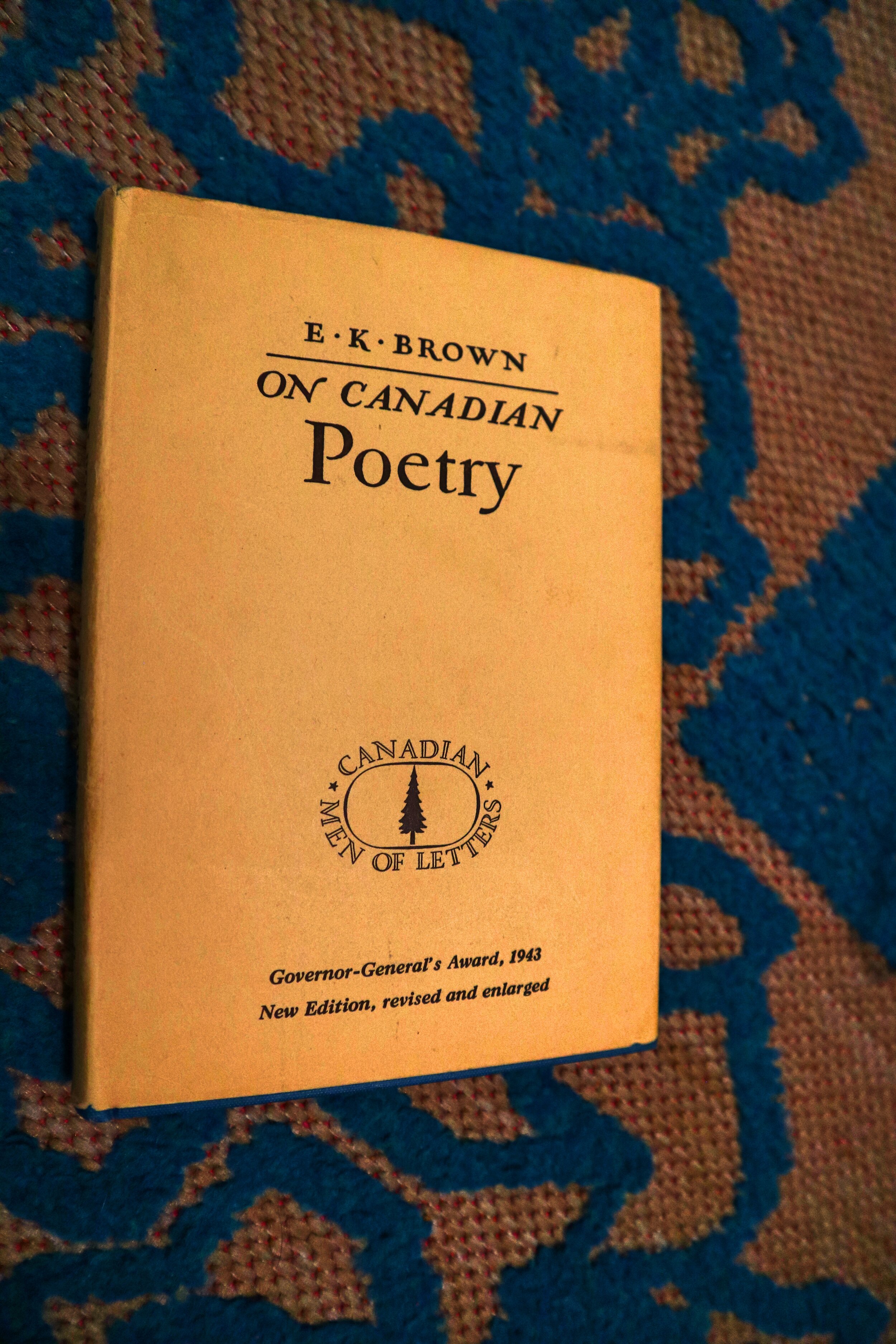 E.K. Brown (1905-1951) was one of Canada’s best commentators on Canadian literature. Not surprisingly, he spent most of his career teaching in America. At the hotel I picked up a pristine copy of his GG Award-winning criticism, On Canadian Poetry