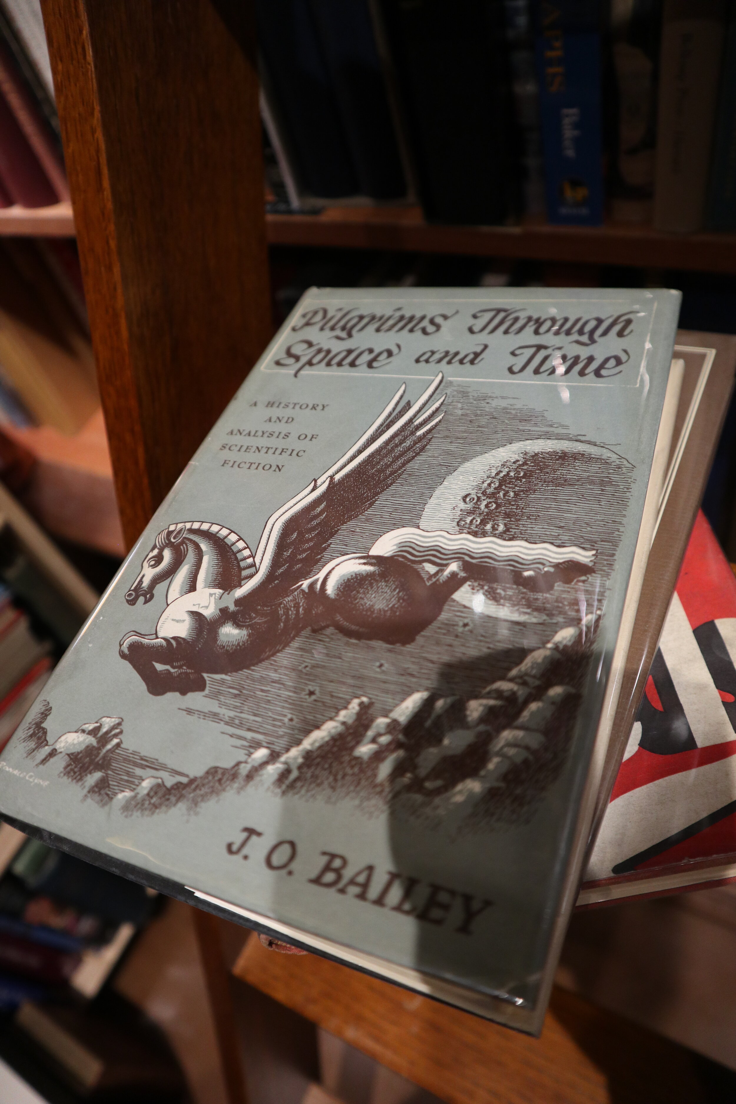 Mark and Michael know each other so, after they’d exchanged pleasantries at the restaurant, Michael and I made our way back to my hotel for our interview. Afterwards we visited a local used bookstore and browsed it for a bit.
